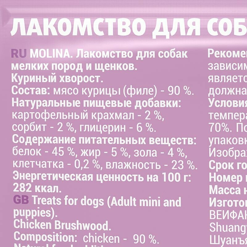 Молина Лакомство для собак мелких пород 50 г куриный хворост 3шт интересное: