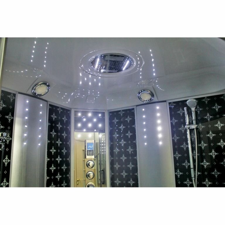 | Отзыв: | Очень просторный душевой бокс, вдвоем комфортно находиться. Есть верхнее и боковое освещение, а еще подсветка панели управления. Нравится тропический душ. |
