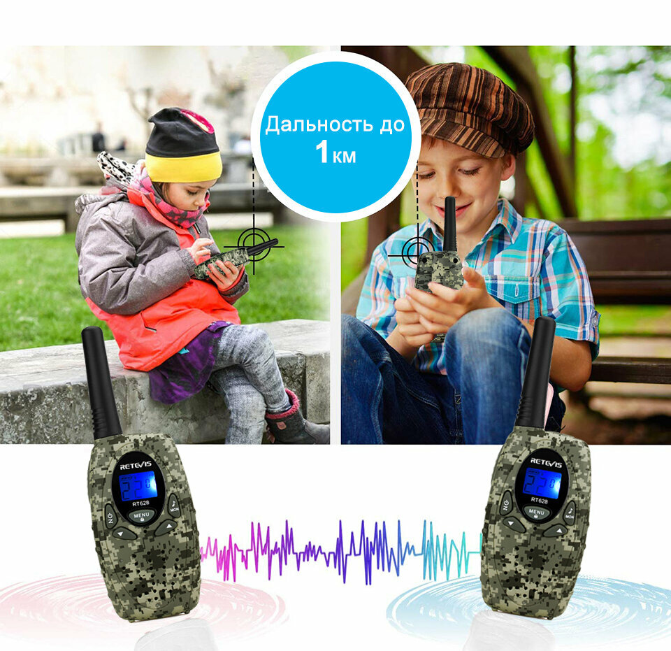 Комплект раций Retevis RT628 2 штуки, детские рации (цвет Camo) интересное: