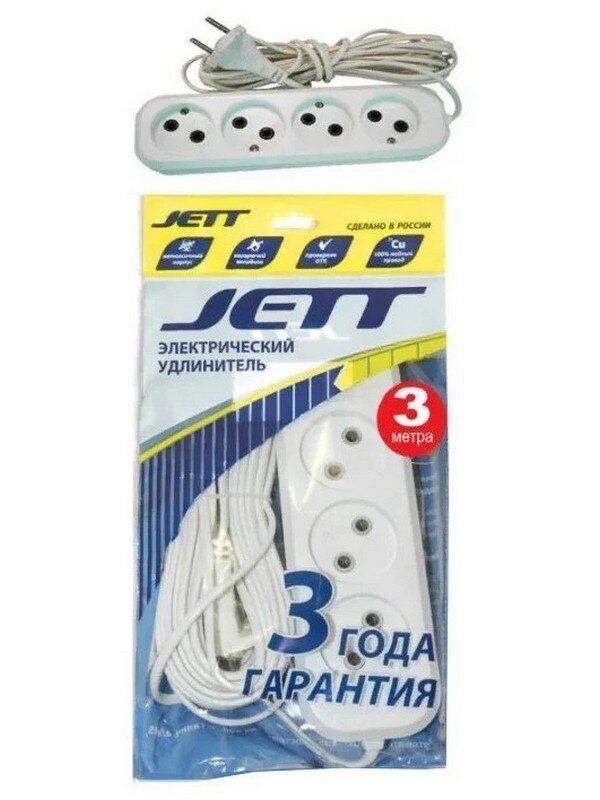 Удлинитель Джетт РС-4 без з/м, 4р*3м ( провод ШВВП ) 155-083 .