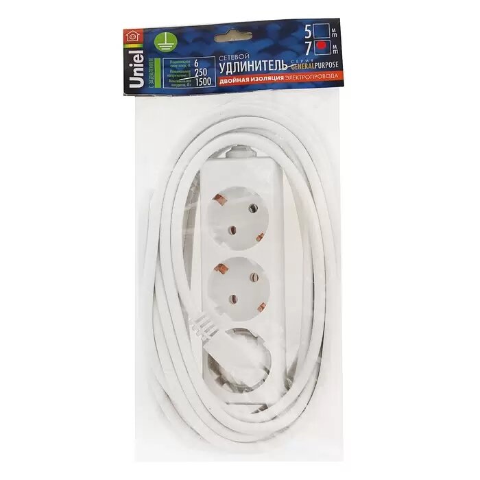 Удлинители серии General purpose без заземления UNIEL UL-00006562 S-CP3-1,5