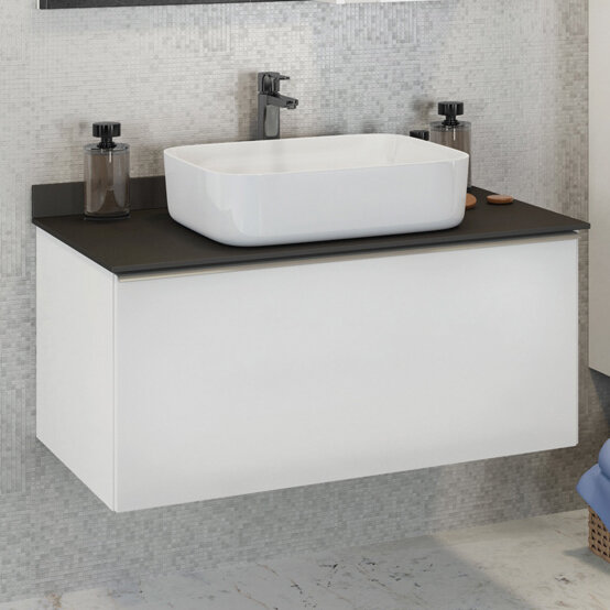 COMFORTY. Тумба-умывальник "Амстердам-95" белая с черной матовой столешницей с раковиной COMFORTY T-Y9378
