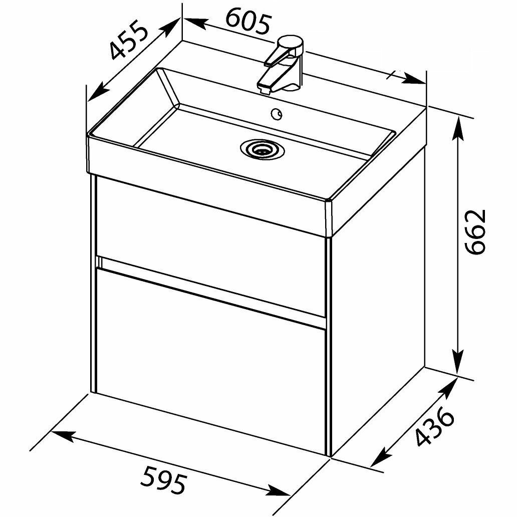 Подвесная Тумба с раковиной Aquanet Бруклин 60 белый