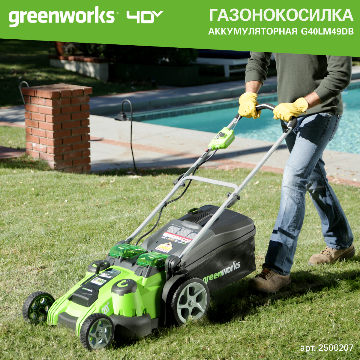 Газонокосилка аккумуляторная GreenWorks G40LM49DB 2500207