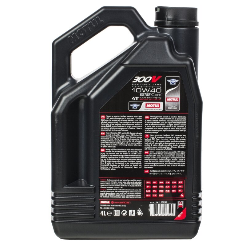 Моторное масло Motul 300V 4T FL Road Racing 10W-40 для мотоциклов, синтетическое, 4л (104121) .