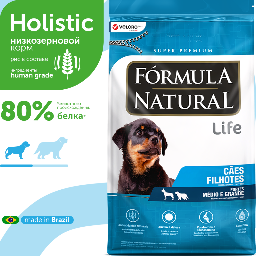 Сухой корм для щенков средних и крупных пород, Formula Natural Life Super Premium - низкозерновой, полнорационный, с курицей, Бразилия, 7,5 кг
