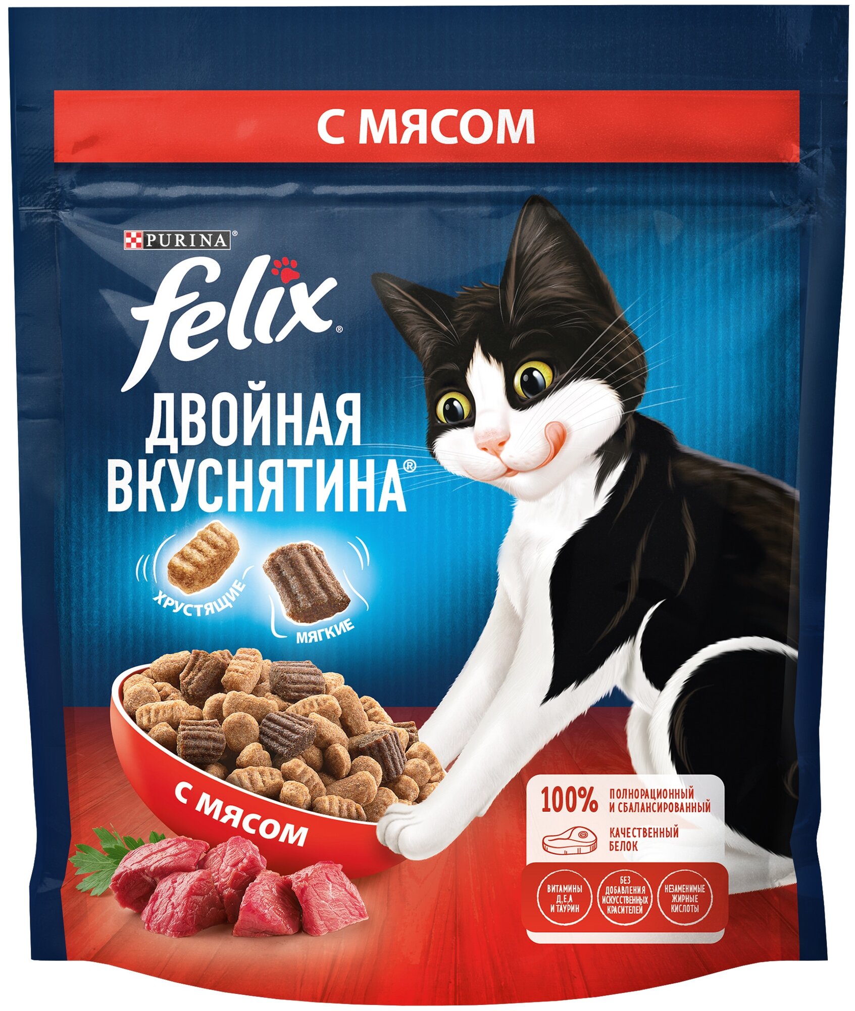 Корм сухой для взрослых кошек FELIX Двойная вкуснятина с мясом, 600г