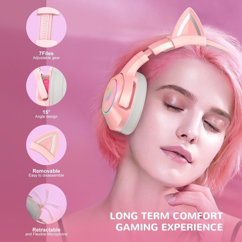 ONIKUMA - K9 Pink Cat. Профессиональные игровые наушники cat ear с ушками кошки и подсветкой. интересное: