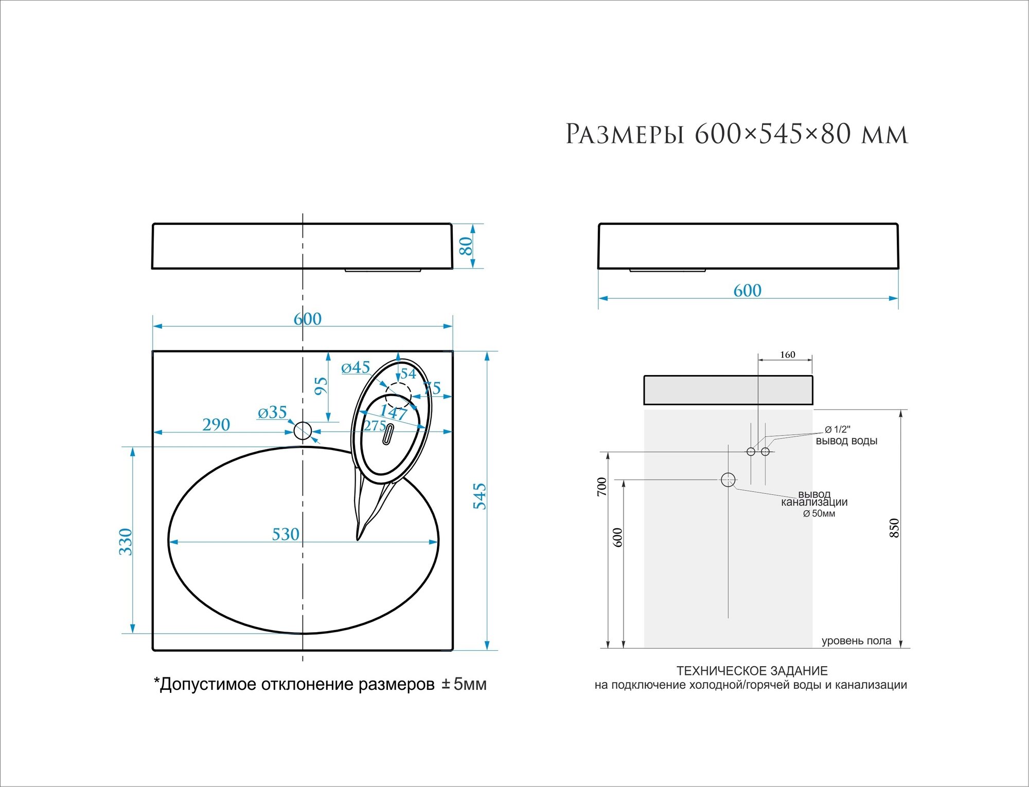 Раковина над стиральной машиной Prado V55D1 (600x545x80) с кронштейнами