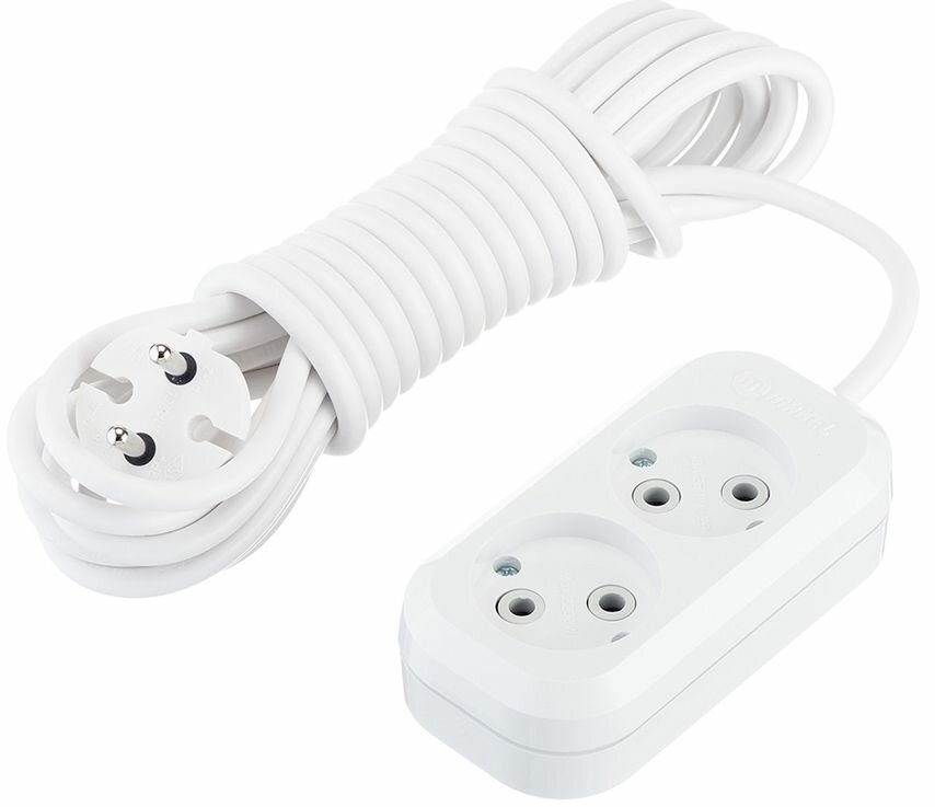 Удлинитель Makel 2 розетки 5 м метров длина 2 гнезда без заземления б/з Макел 2х0,75 ПВС электрический сетевой бытовой 2200 вт 220в белый, арт. MGP104