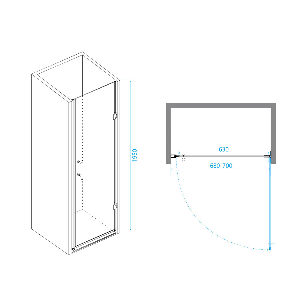 Душевая дверь RGW PA-06B 41080607-54 распашная 70х195. Размер регулировки 680-700 мм.