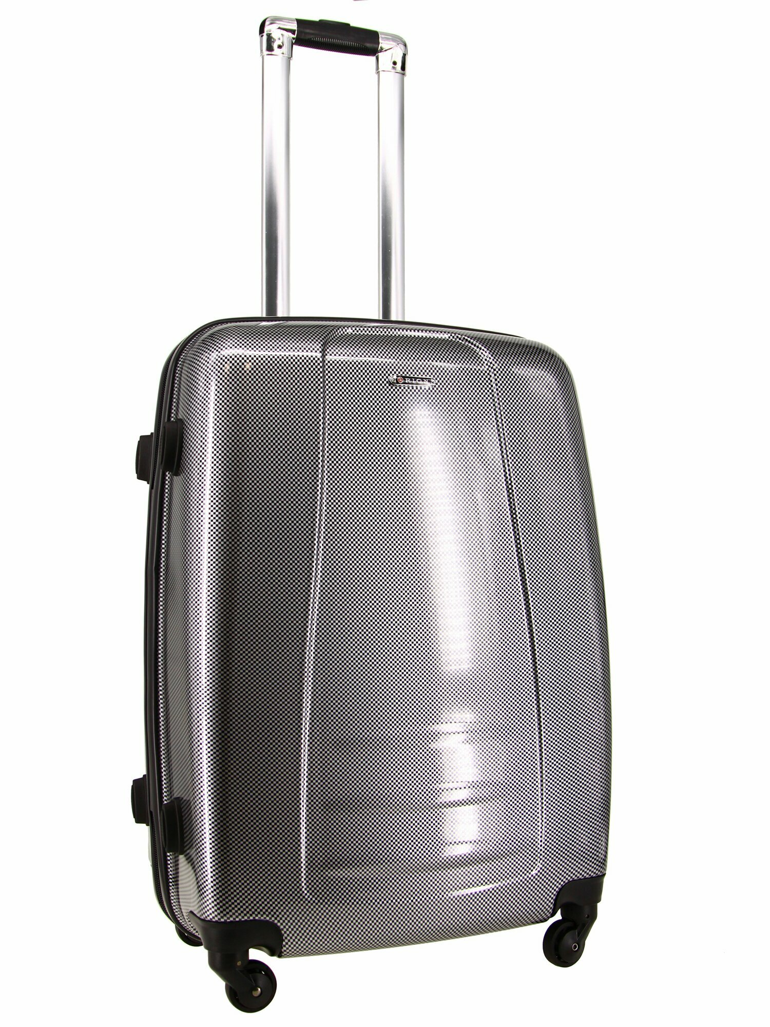 Чемодан Рион+ (RION+) R416, Пластик, 65 см, 52 литра, 4 колеса, M (56-70 см), усиленный толстый пластик, серый металлик