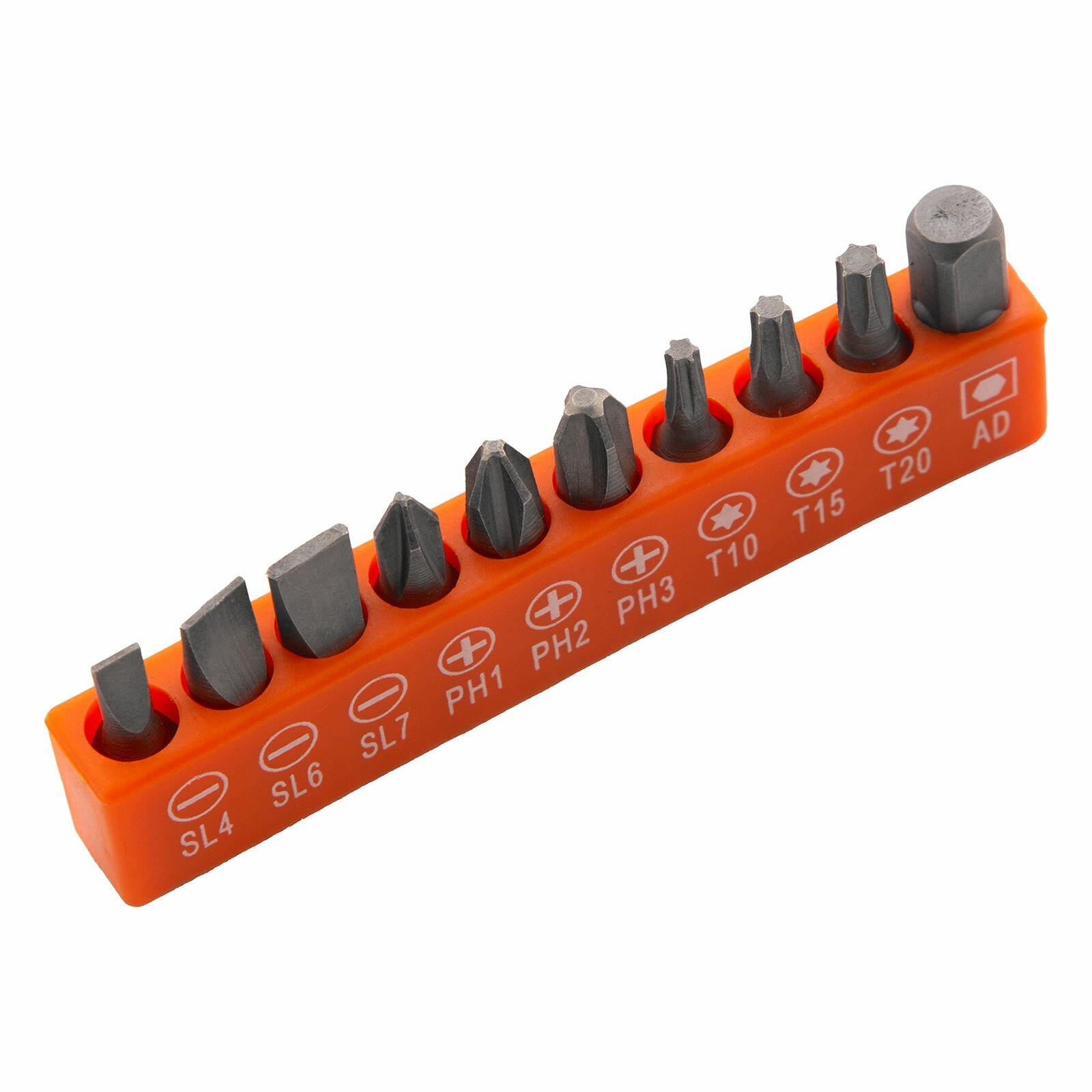 | Биты подробно | 1/4": PH1, PH2, PZ1, PZ2, SL4, SL5, SL6, T10, T15, T20 |