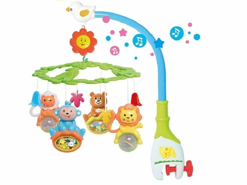 Музыкальная карусель для кроватки на бат. 4 ярких подвесных игрушки, колыбельные мелодии, свет. эффе