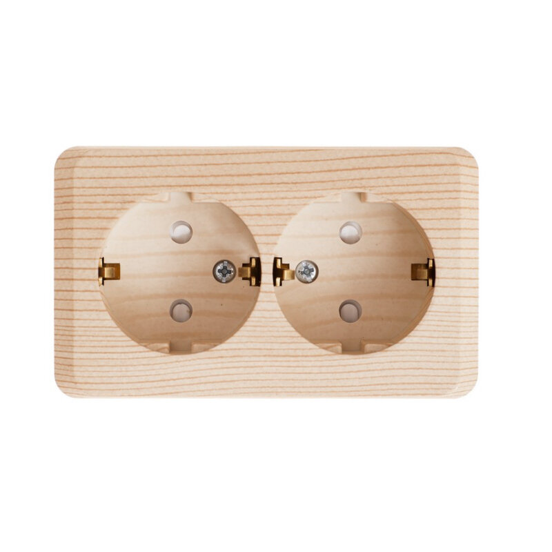 Розетка двойная с заземлением, со шторками, сосна, О/У PA16-008D 3 шт