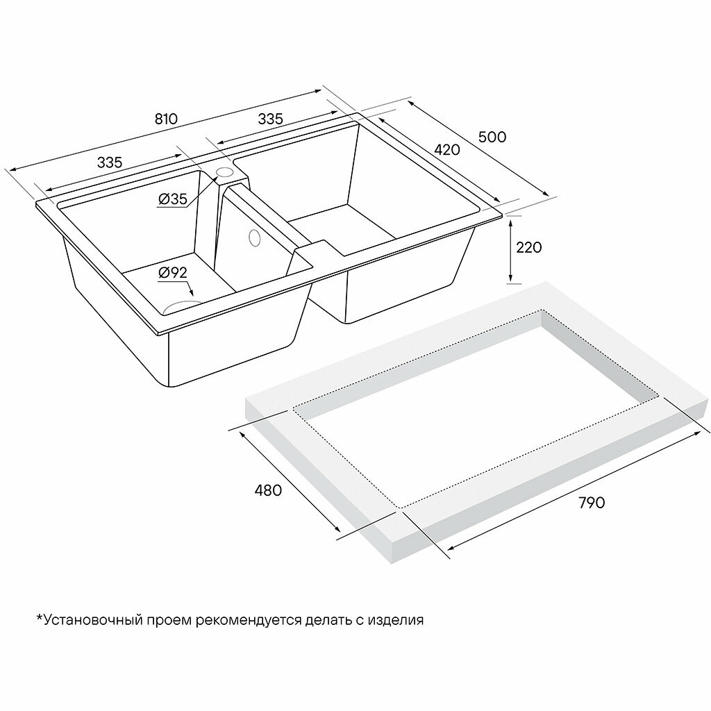 | Форма мойки | прямоугольная |