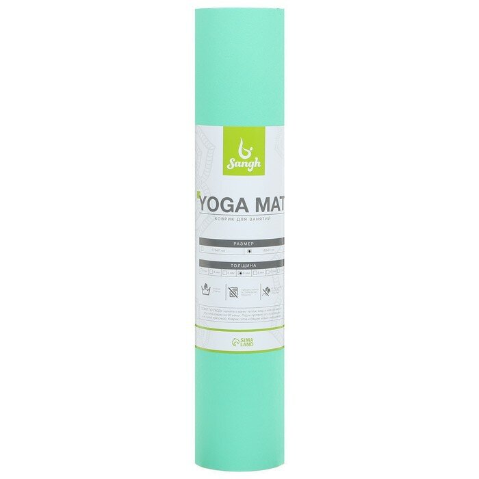 Коврик для йоги Sangh, 183х61х0,6 см, цвет мятный/серый