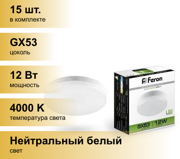 (15 шт.) Светодиодная лампочка Feron GX53 (12W) 230V GX53 4000K 4K, LB-453 25835