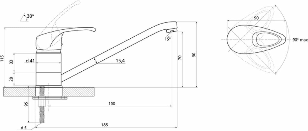 Смеситель для мойки с коротким изливом (150 мм), одноручный.Р20(Славен)