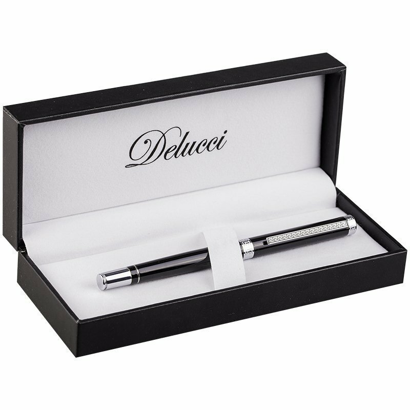 Ручка-роллер Delucci "Classico" черная, 0.6мм, цвет корпуса - черный/хром, подарочная упаковка