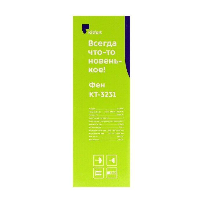 Купить Фен Kitfort КТ-3231, 2000 Вт, 2 скорости, 3 температурных режима, чёрный Kitfort