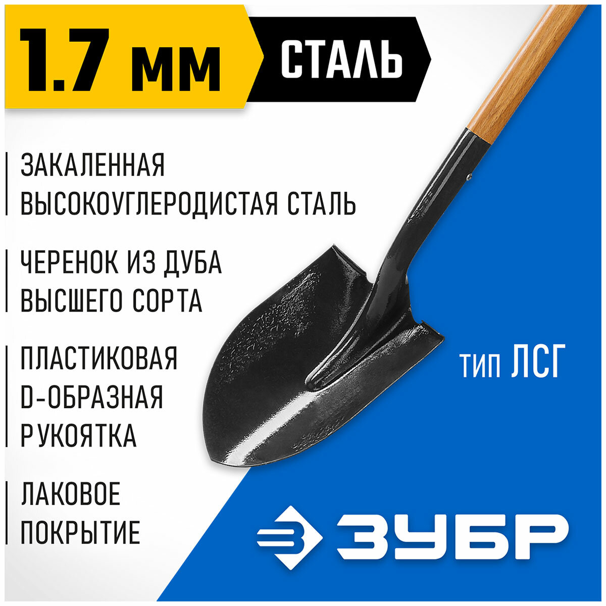 ЗУБР Профи-10 290 х 210 х 1200 мм, полотно 1.7мм закалено, черенок из дуба высш. сорта с рукояткой, тип ЛСГ, штыковая лопата, Профессионал (4-39530)