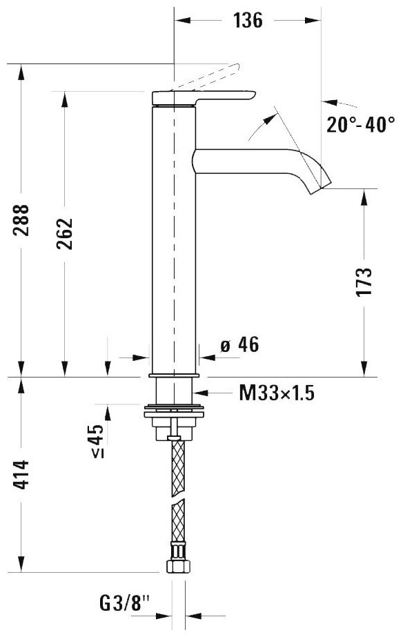 | Длина излива | 136 мм |