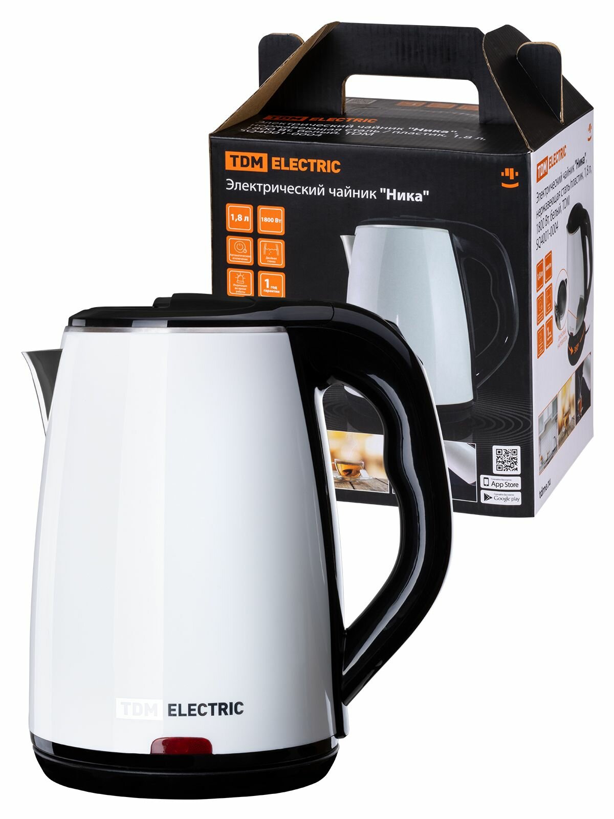 Чайник электрический TDM Ника нержавеющая сталь / пластик 1,8л 1800Вт белый