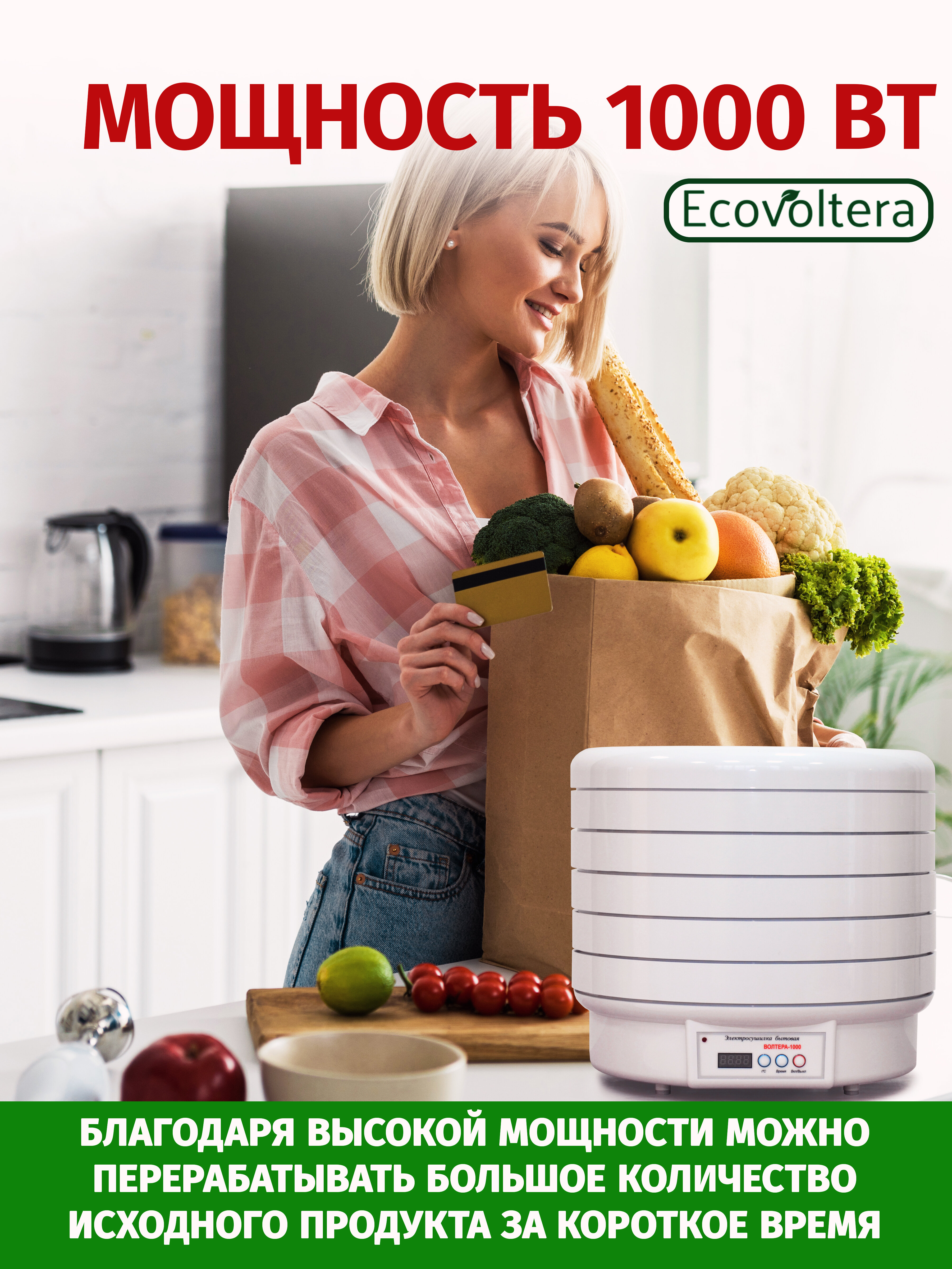 Сушилка ВолТера 1000 Люкс / С таймером и электронным блоком управления / Электросушилка для фруктов, овощей, ягод и грибов / Цвет белый
