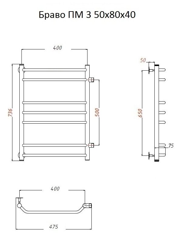 Полотенцесушитель Браво ПМ 3 50*80*40 (ЛЦ4)