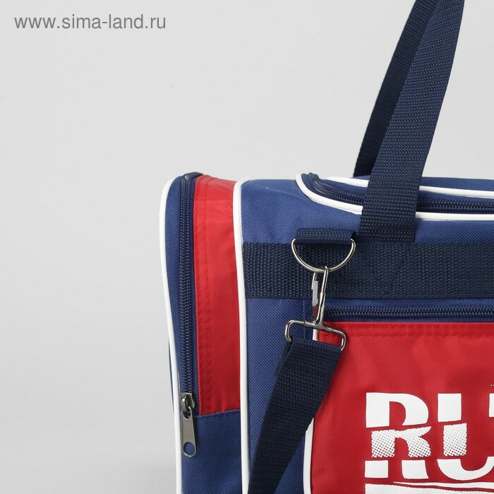 Купить Сумка спортивная, 3 отдела на молниях, наружный карман, длинный ремень, цвет синий/красный