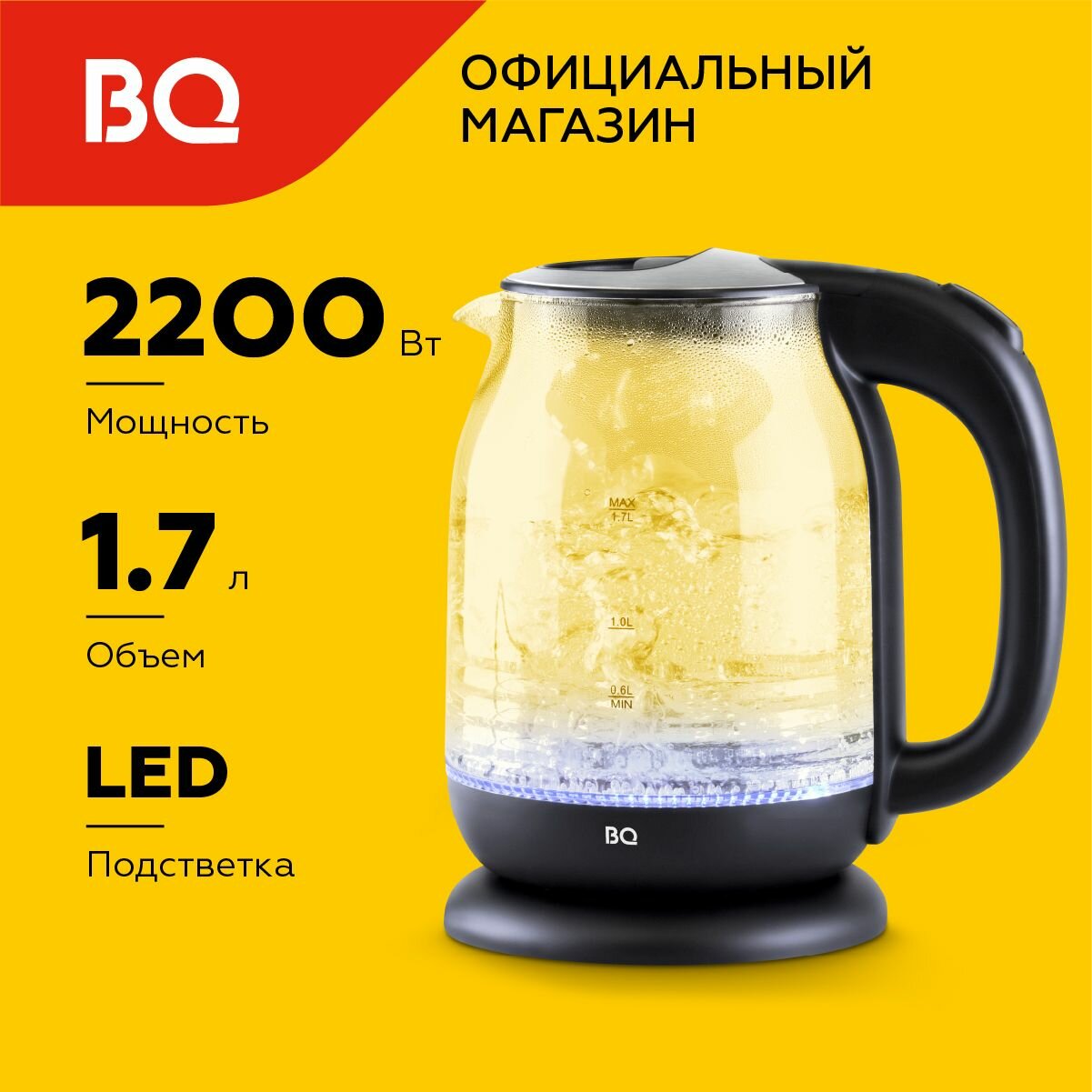 Чайник электрический BQ KT1833G Черный / Стеклянный / 1.7 л 2200 Вт