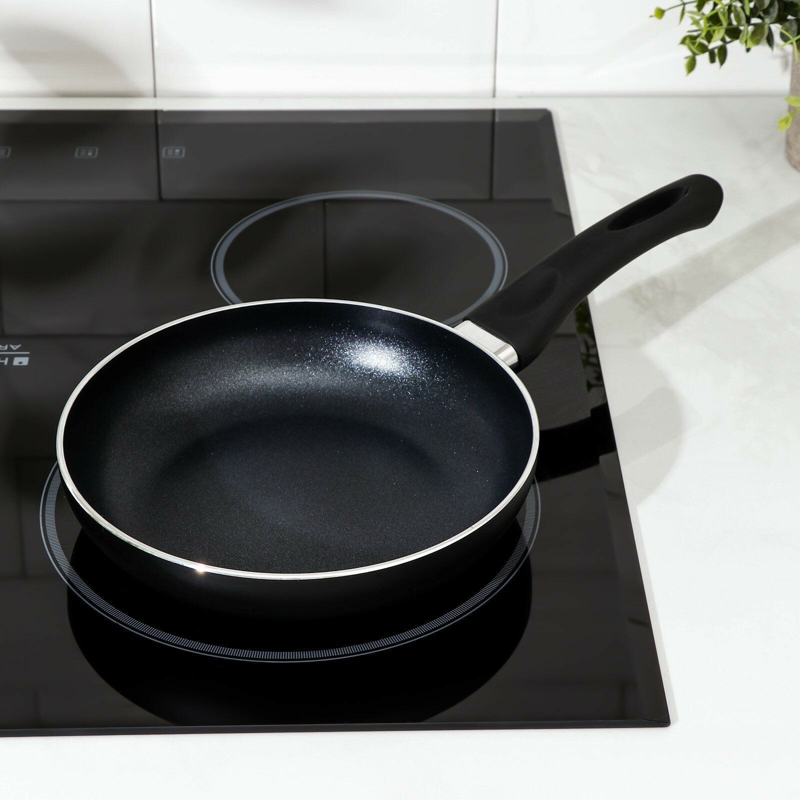Сковорода, диаметр 20 см, пластиковая ручка, антипригарное покрытие, индукция, чёрный