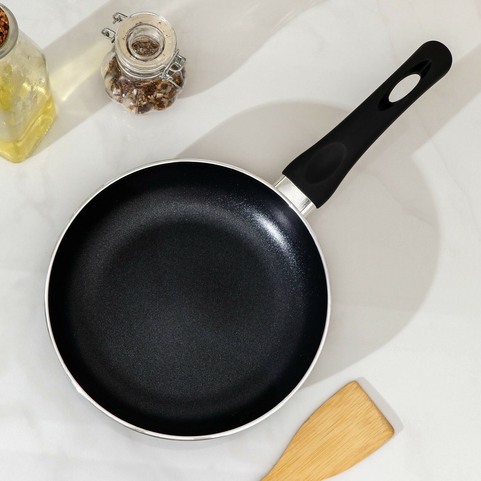 Купить Сковорода Доляна Basic, d=20 см, пластиковая ручка, антипригарное покрытие, индукция, цвет чёрный