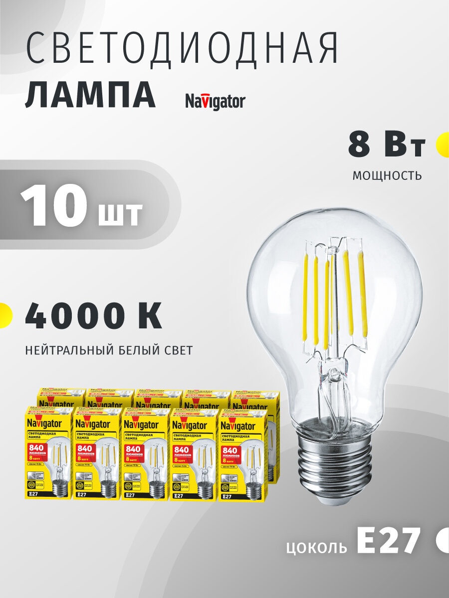 Купить Лампа светодиодная Navigator 61 345 NLL-F, 8 Вт, груша E27, дневного света 4000К, упаковка 10 шт.