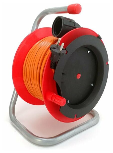 Удлинитель силовой LUX К1-О-25, розеток 1шт, 2x0.75 кв.мм, 6A, 25м, ПВС, катушка, оранжевый [22025]