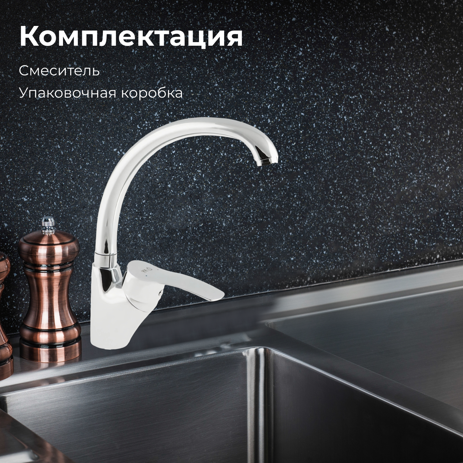 Смеситель для кухни, раковины с поворотным высоким изливом, аэратор AV Engineering (AVQUN4-B088-234)