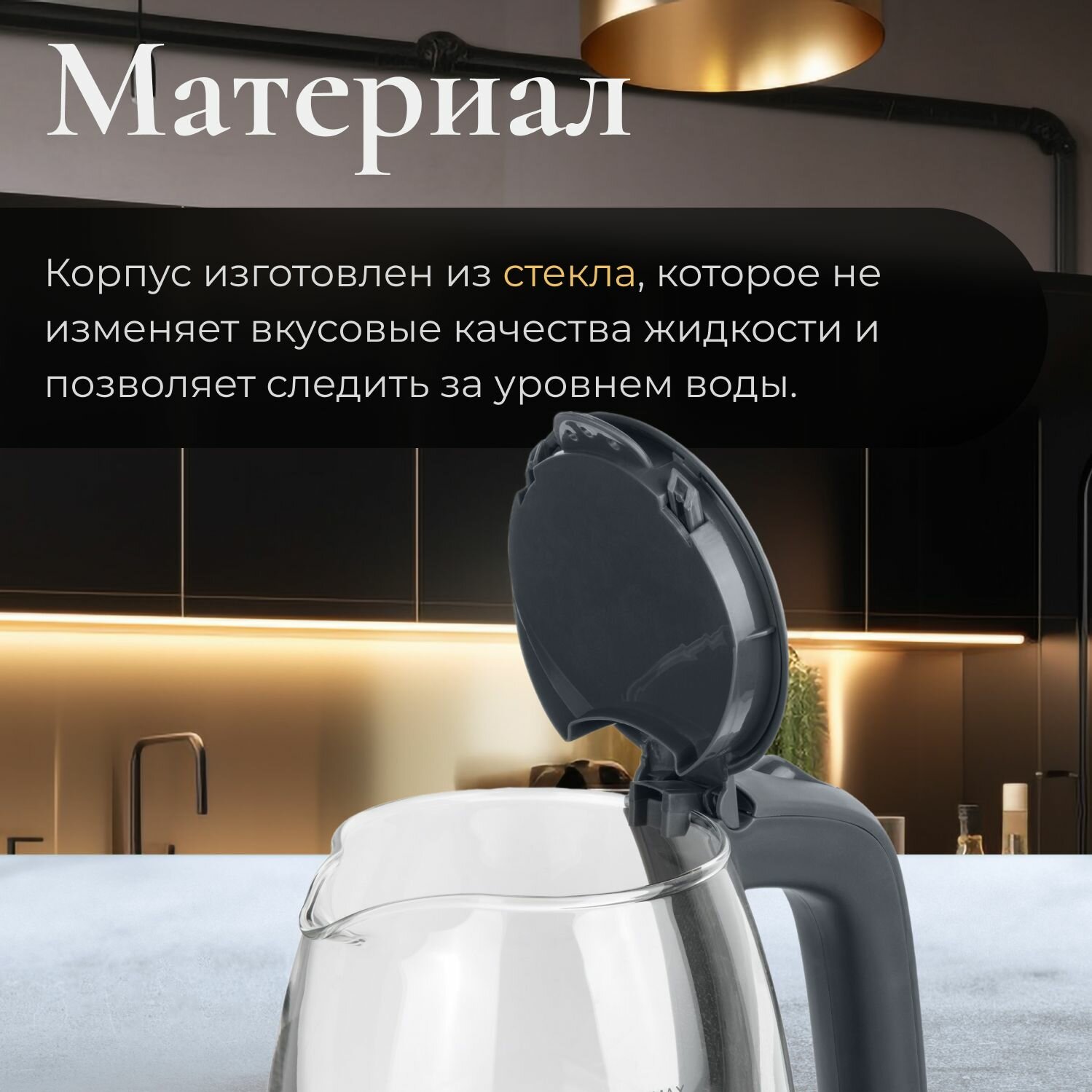 Купить Чайник электрический стеклянный с подсветкой 1,7 л черный NORMANN AKL-236