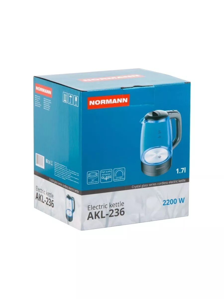 Чайник электрический AKL-236 NORMANN (2200 Вт; 1,7 л; стекло; подсветка) (AKL-236)