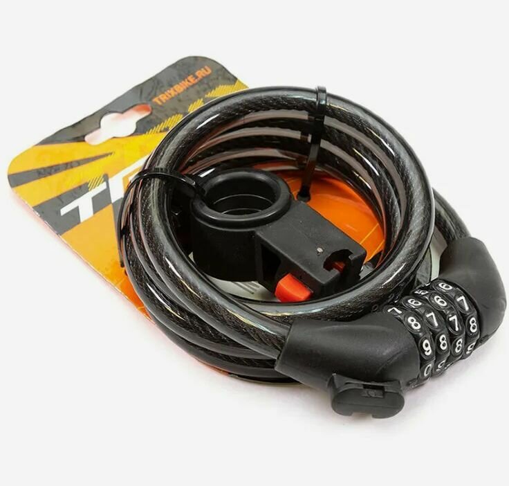Замок противоугонный TRIX, трос стальной, кодовый, 8х1500мм, в пластиковой оболочке, черный интересное:
