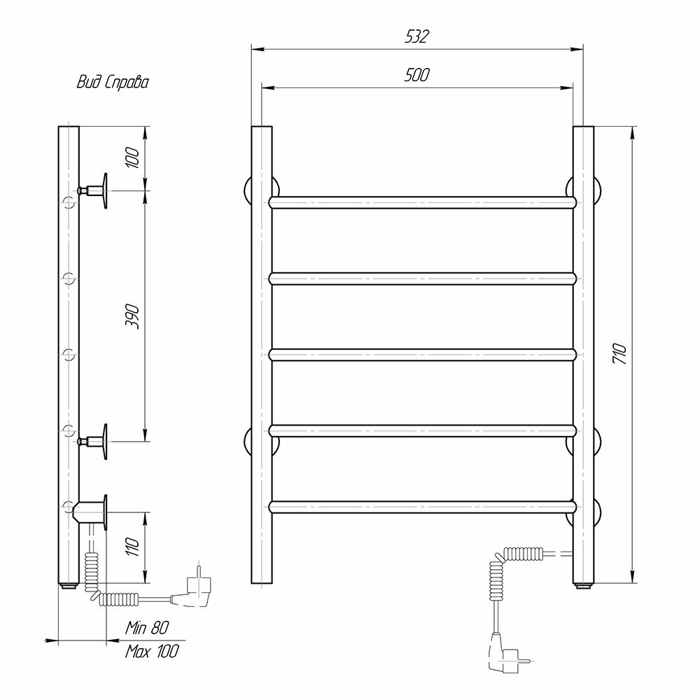 Полотенцесушитель Электрический Тругор Пэк сп 5 П 60х50 черный ВГП