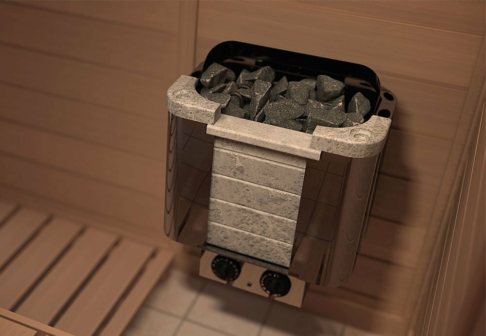 CML-90NB-P Печь электрическая CUMULUS, сочетание нержавеющей стали и финского талькохлоритного камня, встроенный пульт управления с таймером и термостатом