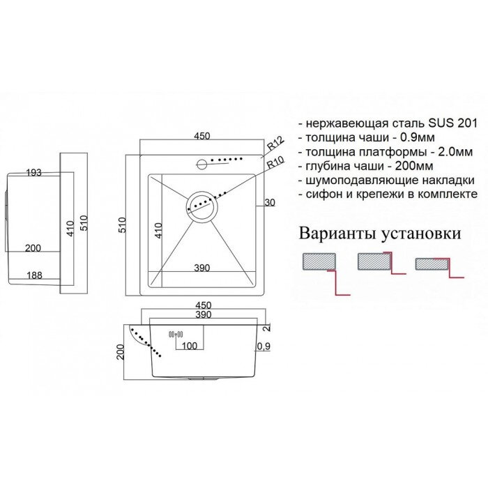 | Дополнительная информация | толщина стали 0,9 мм; сифон и крепежи входят в комплект |