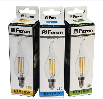 Лампа светодиодная LED 5вт Е14 белый свеча FILAMENT | код 25573 | FERON ( 1шт )