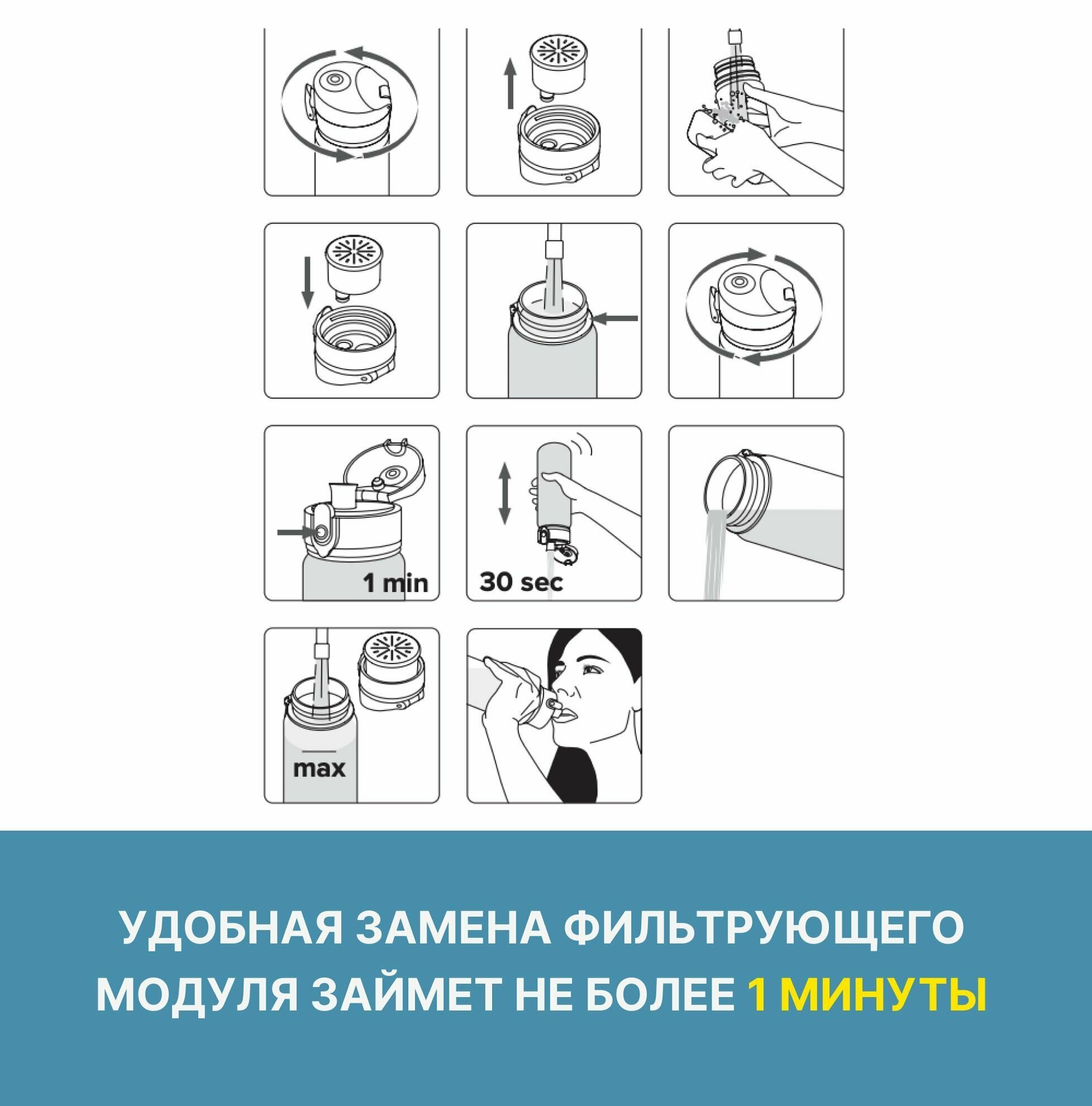 | Плюсы: | Очень удобно ! Воду из-под крана пью на тренировке, не парясь. Кинул в сумку и везде с собой питьевая вода |
