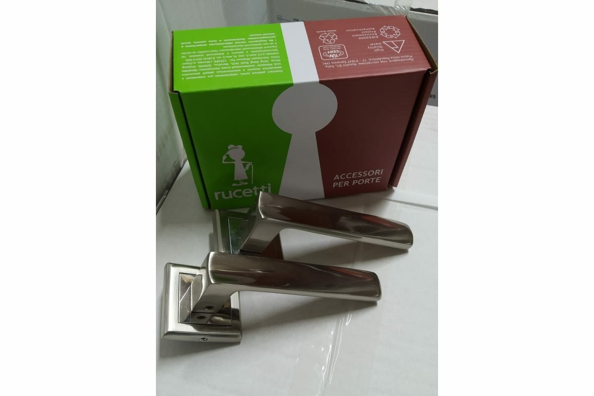 Дверная ручка на квадратной розетке RUCETTI RAP 14-S SN/CP белый никель/полированный хром интересное: