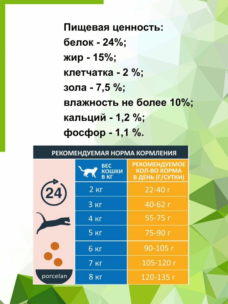 | Возраст животного | взрослые (1-6 лет) |