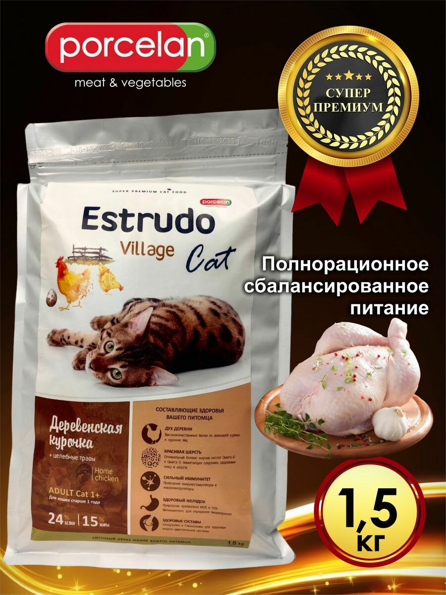 Купить Сухой корм Estrudo Village Cat (Деревенская курочка) для кошек (крас. шерсть) 1,5 кг