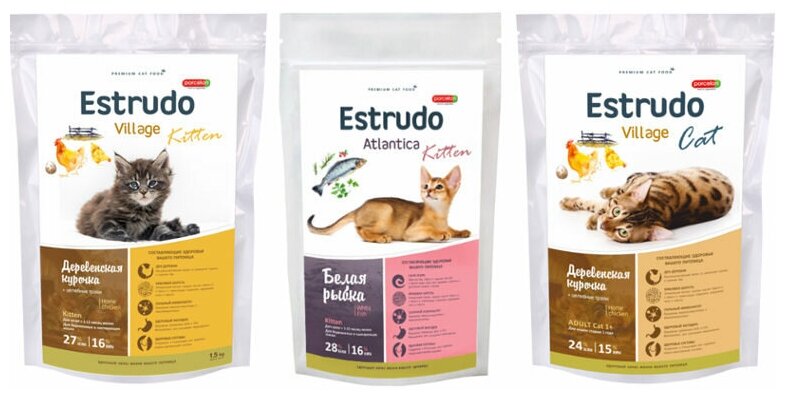 Ниже Вы можете прочитать отзывы на Сухой корм Estrudo Village Cat (Деревенская курочка) для кошек (крас. шерсть) 1,5 кг, ознакомится с подробными характеристиками, посмотреть интересные обзоры и фотографии на Сухой корм Estrudo Village Cat (Деревенская курочка) для кошек (крас. шерсть) 1,5 кг.