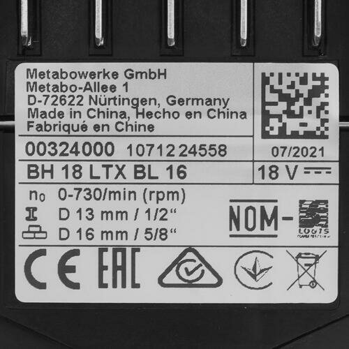 Перфоратор аккумуляторный Metabo BH 18 LTX BL 16 0 кейс, без аккумулятора, 10 Вт интересное: